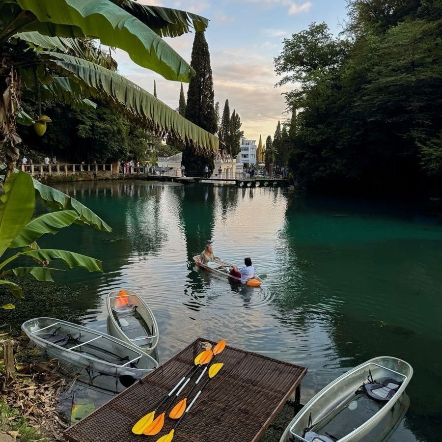 Дегустации вина, сыра,меда. Голубое озеро.Юпшарский каньон (Каменный мешок). смотровая «Прощай Родина». Бзыбское ущелье, водопады Девичьи и Мужские слёзы. Озеро Рица (экосбор включён в стоимость) Водопад Гегский 75м. Белые скалы. Купание в море.